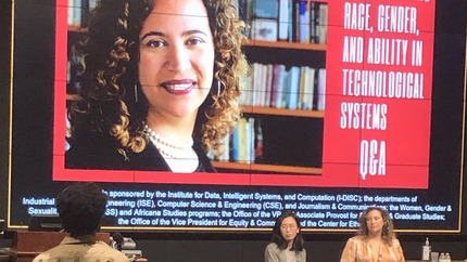 This event was sponsored by the Institute for Data, Intelligent Systems, and Computation (I-DISC); the departments of Industrial & Systems Engibeering (ISE), Computer Science & Engineering (CSE), and Journalism & Communications; the Women, Gender and Sexuality Studies (WGSS) and Africana Studies programs; the Office of the Vice President and Associate Provost for Research and Graduate Studies; the Office of the Vice President for Equity and Community; and the Center for Ethics.